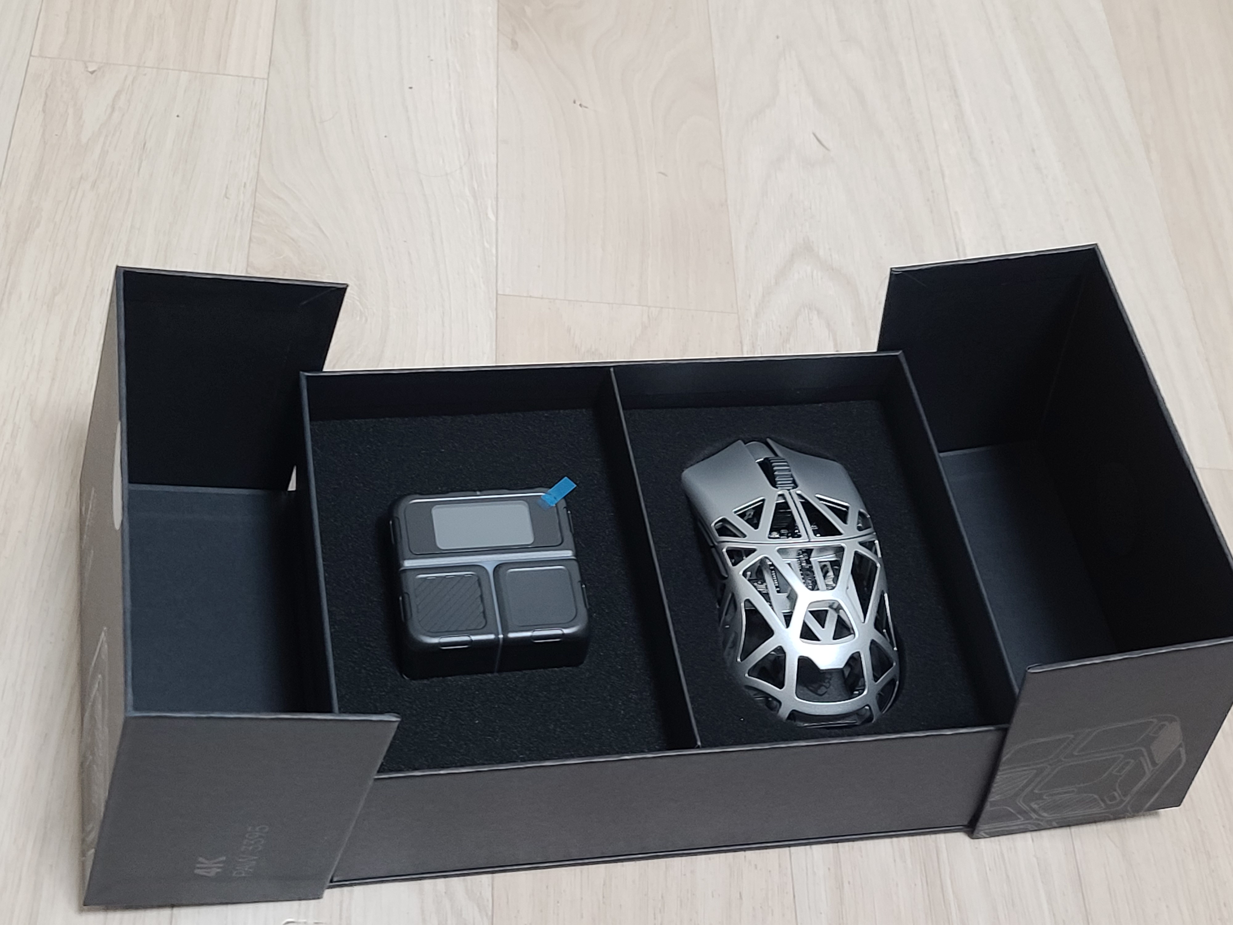기본 피트는 하얀색 조그만 도트 피트, 검정 넓은피트와 오른쪽 반짝이는 유리피트(발매기념한정), 그 옆에 그립테이프도 포함되어 있다 자석 어댑터쓰고 싶었는데 짐승에는 소켓이 맞지가 않아서 못씀