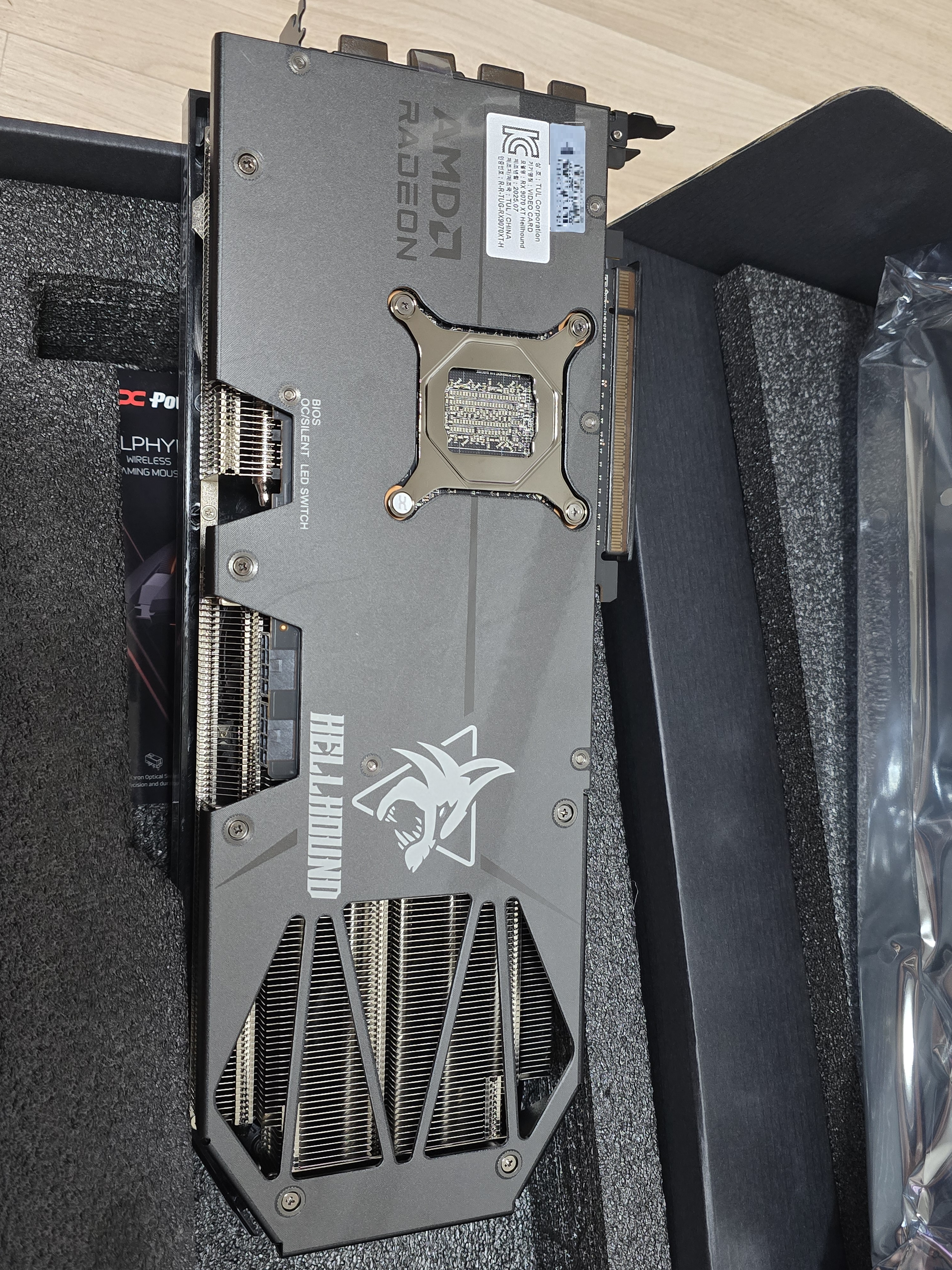 파워컬러 9070xt에는 휨방지 지지대가 없더라. 사실 그래픽카드 빼고 아무것도 없었음. 설명서도 없어..